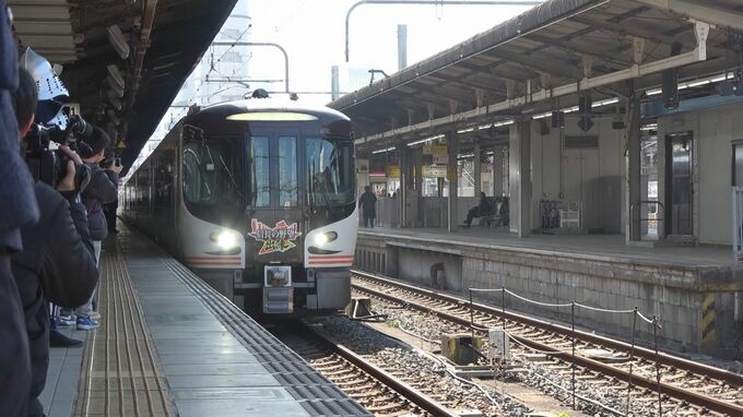 JR東海が人気ゲームとコラボし、特別装飾を施した列車が登場しました。JR名古屋駅にやってきたのは、スマートフォンなどで楽しめる人気ゲーム「信長の野望出陣」のロゴマークが装飾された特急「ひだ」です。先頭列…