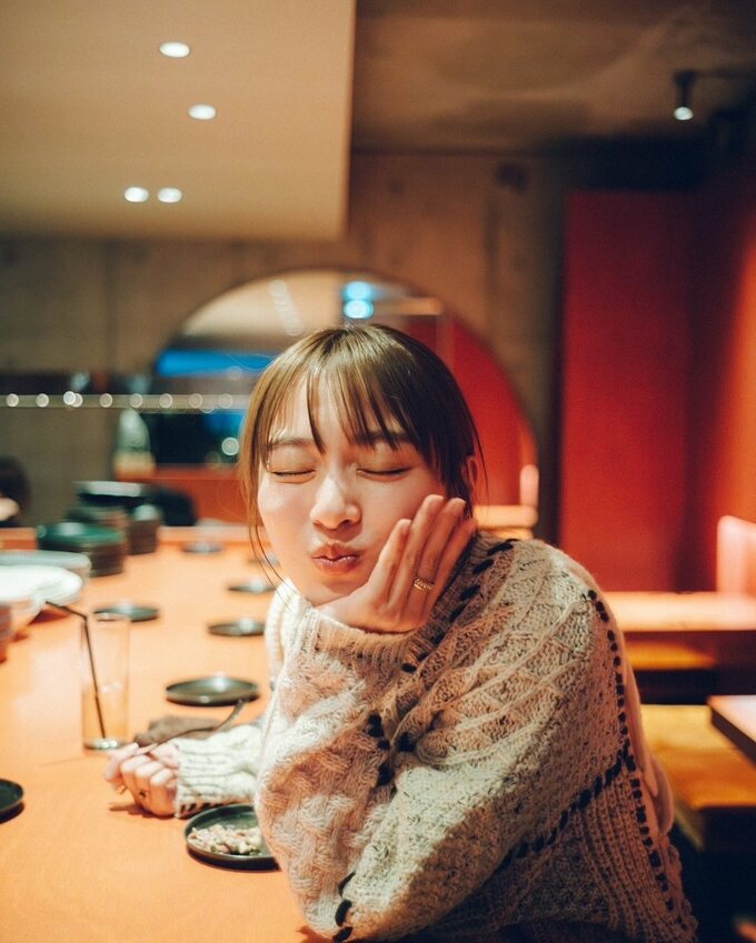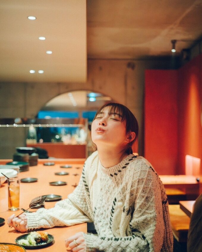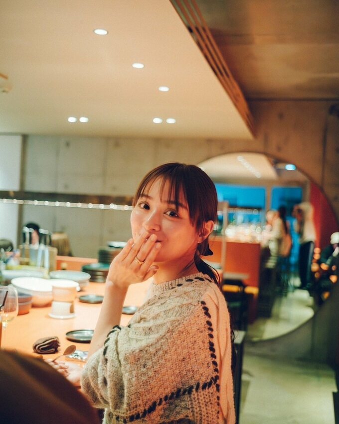 内田理央さんは「ドラマの撮影終わりに向かった 三茶のお気に入りのお店」と綴ると、店内のカウンター席に座る画像をアップ。