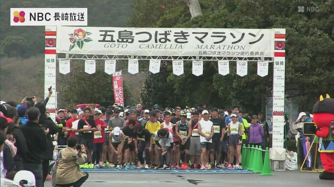 「第25回五島つばきマラソン」は県内唯一のフルマラソンなど3つの部門に分かれて行われました。この大会はコースの起伏が激しいことが特徴で、遠くは北海道や沖縄など県内外から620人の選手が参加しました。