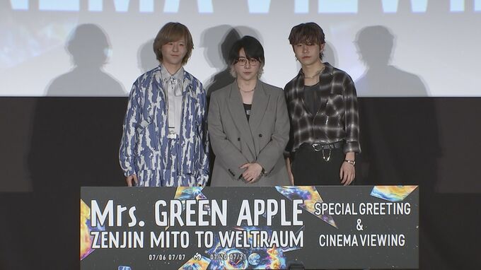 2日、Mrs. GREEN APPLE(大森元貴さん・若井滉斗さん・藤澤涼架さん)が、1度限りの上映イベント「Mrs. GREEN APPLE ゼンジン未到とヴェルトラウム〜銘銘編〜」SPECIAL GREETING & CINEMA VIEWINGの舞台挨拶に登壇しました。