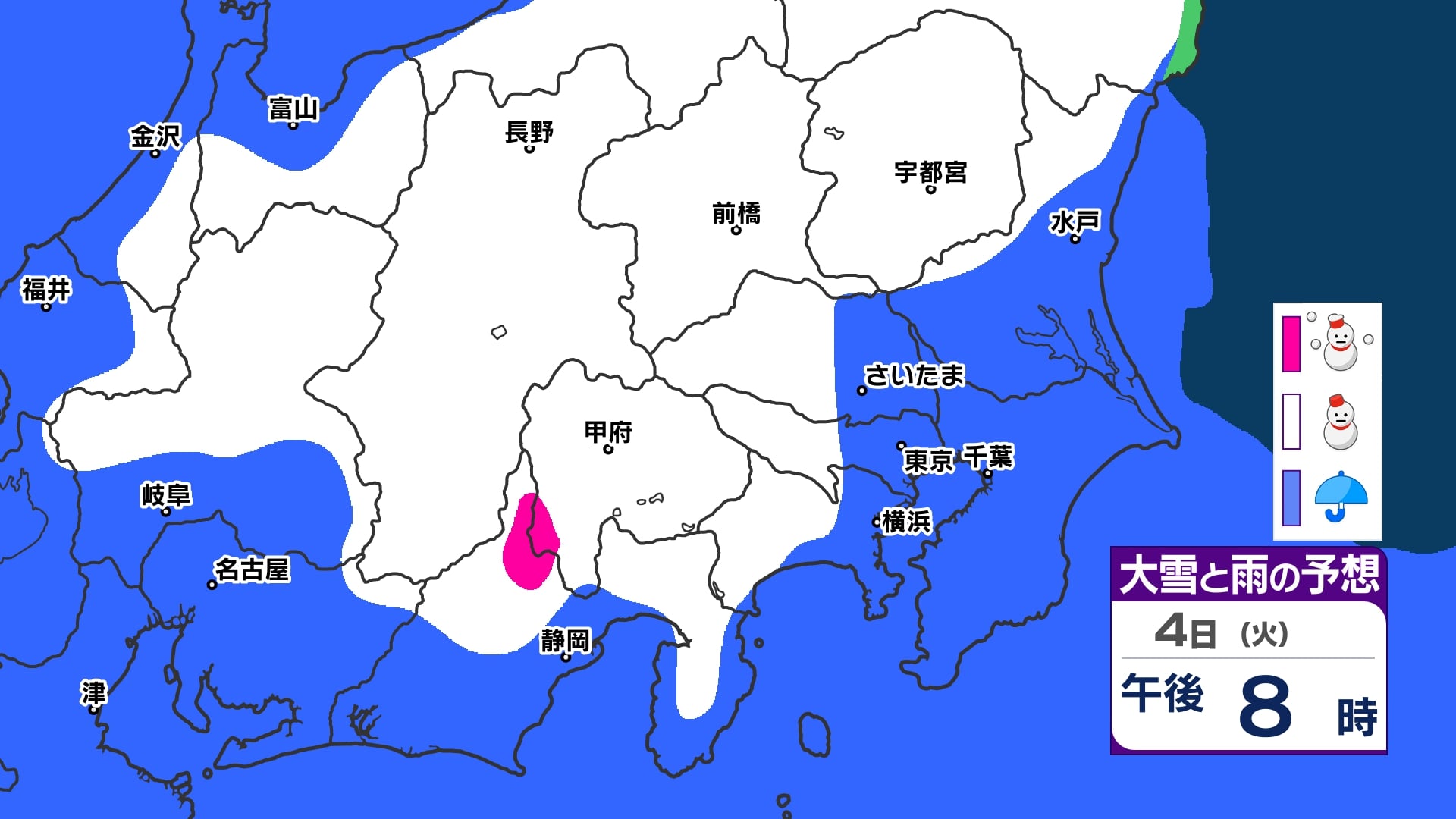 【大雪情報】東京都心も雪 23区1cm 多摩5cm【東京・神奈川・埼玉・千葉の雪の予報を詳しく】雪のシミュレーション3月3日(月)~5日(水)/ 雪はいつから 大雪はどこで? 南日本放送 2025年3月3日(月) 13:00 国内 天気 「赤」は「大雪」、「白」は雪の予想です。雨は色別に雨の強さも予想されています。