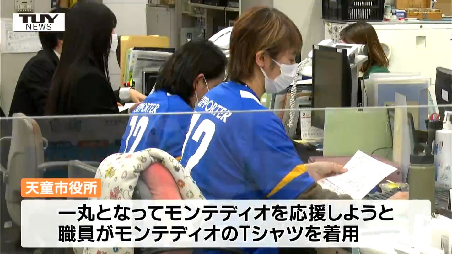 市民一丸となってモンテディオを応援しようと、きょうから ホーム開幕戦までの5日間、職員がモンテディオのTシャツを着てホームタウンを盛り上げています。