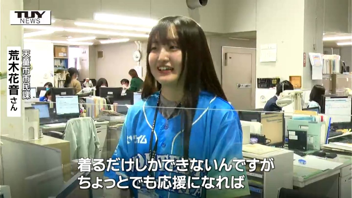 天童市市民課・荒木花音さん「着るだけしかできないんですが、ちょっとでも応援になれば。なんとか次は勝ってもらえれば」