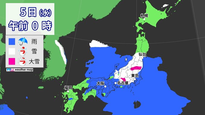 東京23区でも雪予想 あさって(5日)にかけて関東甲信の広い範囲で積雪か 雪はいつどこで降る?最新のシミュレーション【大雪情報】