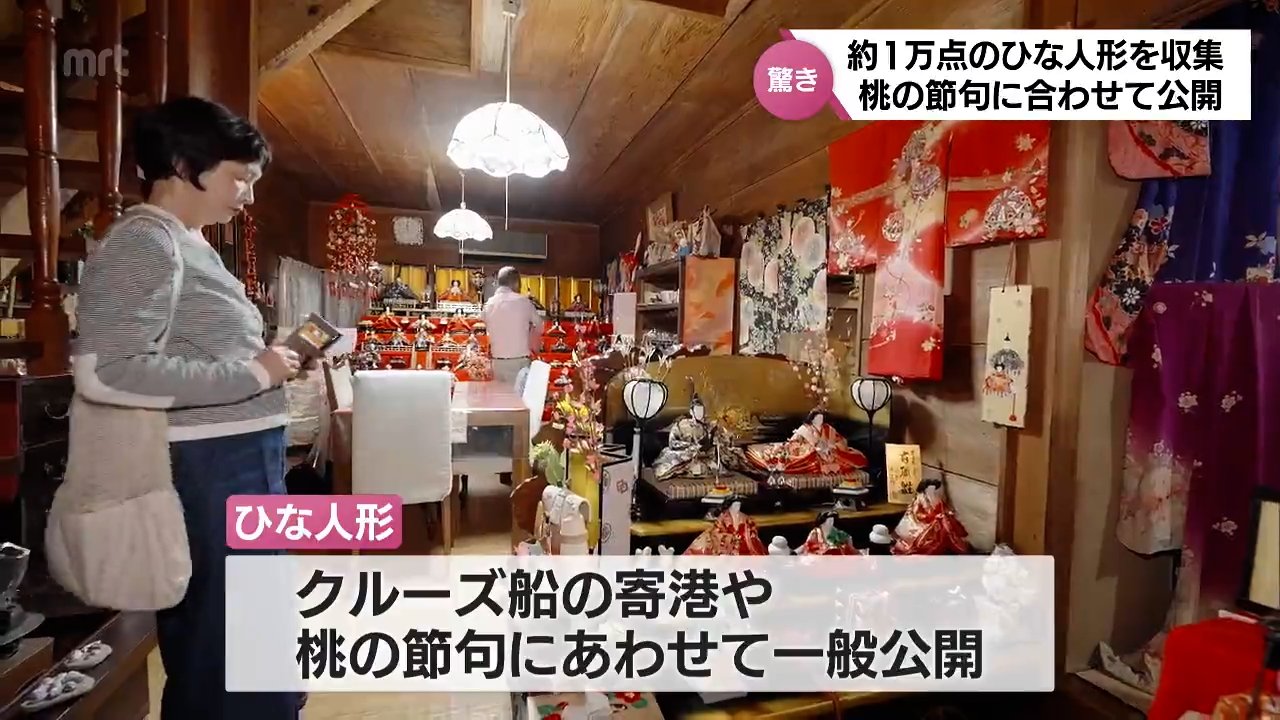夫の縁で旧服部家別荘を所有すると、集めたひな人形をこちらに飾り、クルーズ船が寄港した際や桃の節句にあわせて一般公開してきました。