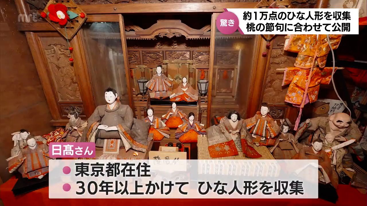 東京都在住の日髙さんは、小学生のころに見たひな人形に魅了され、30年以上かけてさまざまな年代や種類のひな人形を収集。