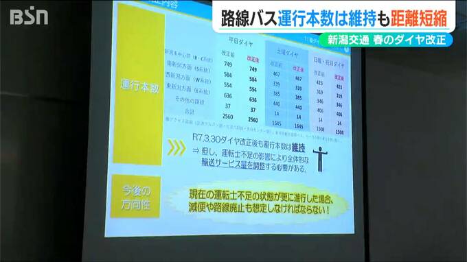 新潟交通が3日、運行する新潟市の路線バスについて、『春のダイヤ改正』で運行本数は維持しつつも、運行距離を短縮するなどの方針を関係者に示しました。