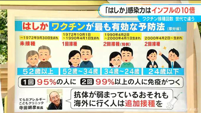 それが、「はしか」は、1人感染者がいた場合は10倍の感染力、12~18人に感染させてしまうため、早期にウイルスを封じ込める必要があるんです。