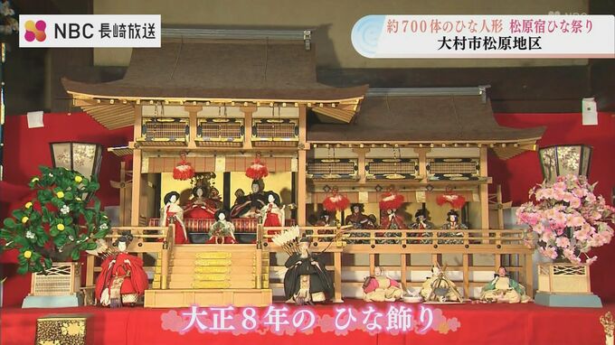 きょう3月3日は桃の節句・ひな祭りです。これに合わせて江戸時代に長崎街道の宿場として栄えた大村市の松原宿では、およそ700体のひな人形が飾られています。