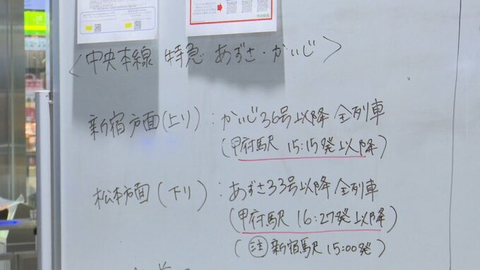 JR中央線は4日午後3時以降特急「あずさ」と「かいじ」がすべて運休となります。JR身延線も午後から順次運転を見合わせます。