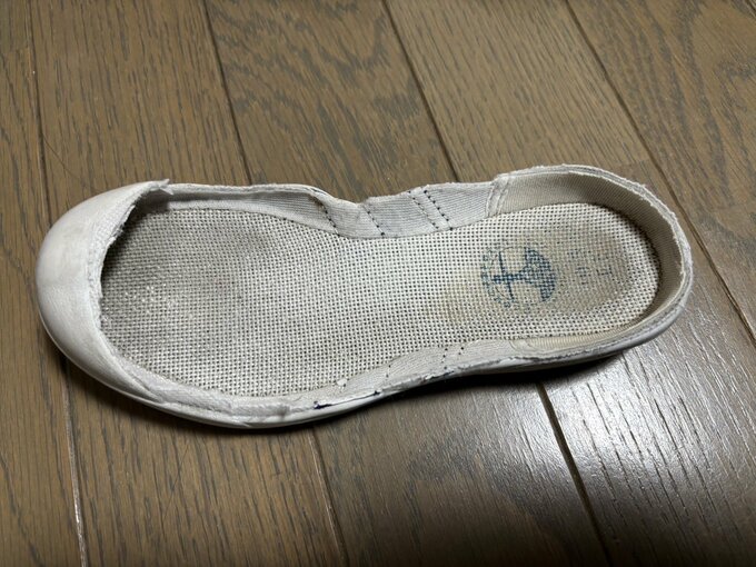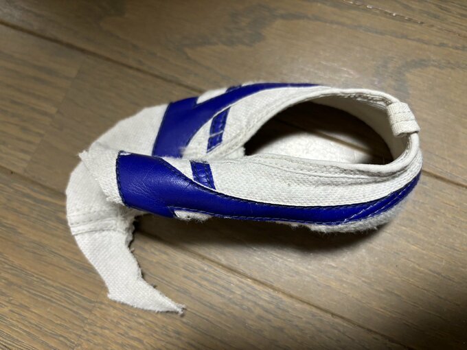 続けて、「布の部分を切り取れば、ソールの部分が競技用のトラックの表面になったり、もう一度ソールに生まれ変わるそうです」と、実際に上履きを切り取る画像をアップ。