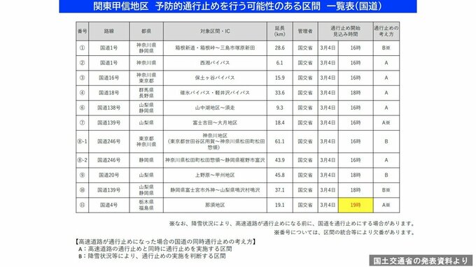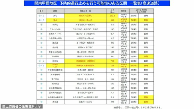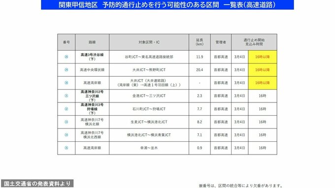 3. 【情報更新】東名、新東名、首都高などで「予防的通行止め」4日午後4時から実施 主な開始見込みはどこ? 高速道路・国道まとめ一覧表あり【いつ?どこで雪は降る?1時間ごとの大雪と雨のシミュレーションあり】