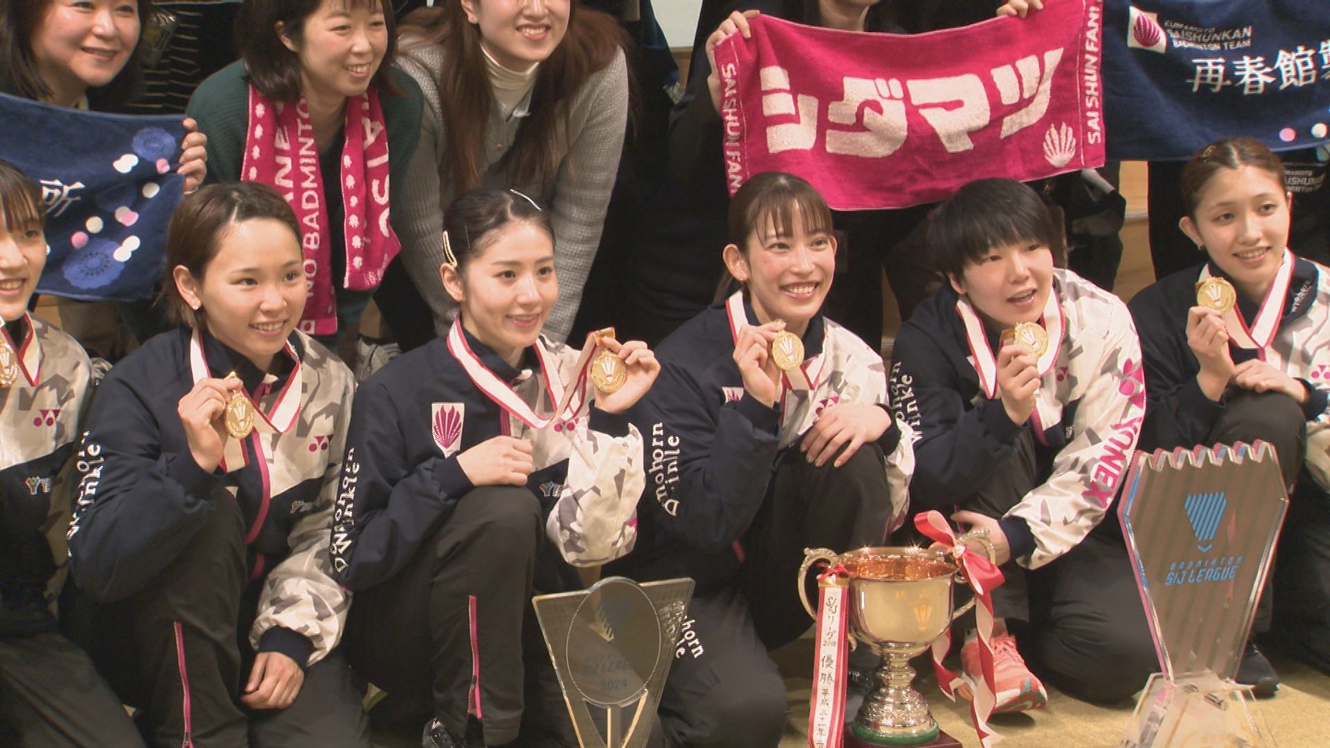バドミントンの日本最高峰リーグで優勝した再春館製薬所の選手が優勝を報告しました。