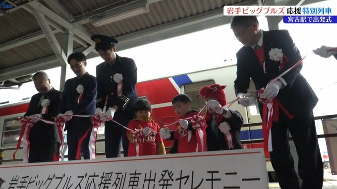 3月、岩手ビッグブルズの試合が宮古市で行われるのに合わせて、三陸鉄道の特別列車が運行されることになり、出発式が行われました。三陸鉄道の特別列車の運行は今回で3回目です。4日、宮古駅で行われた出発式には…