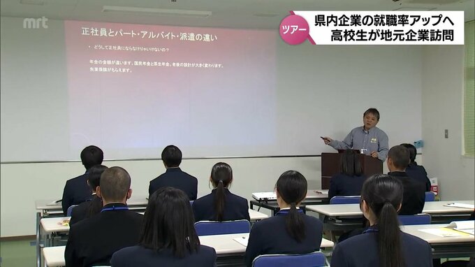 宮崎県内企業の就職率アップを図ります。都城市では、高校生が地元企業を訪問するツアーがありました。これは、人材確保を目的に宮崎太陽銀行が、毎年、開いているもので、4日は、都城市内の4つの高校の2年生22人…