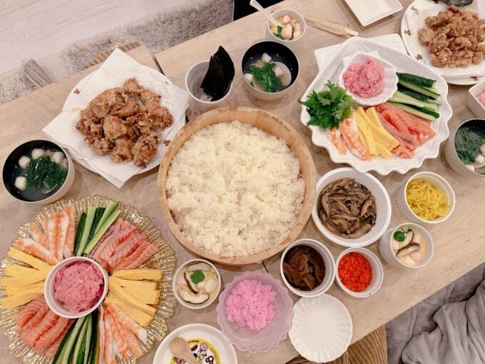 続けて「昨日のひな祭りはみんなで 手巻き寿司や茶碗蒸しを食べました ちなみに私はきゅうりかんぴょう巻き 食べました!!!!!!」と、綴りました。