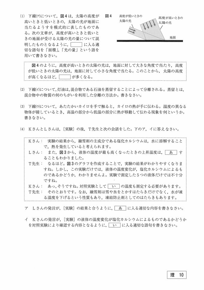 理科の試験問題(9~10ページ)