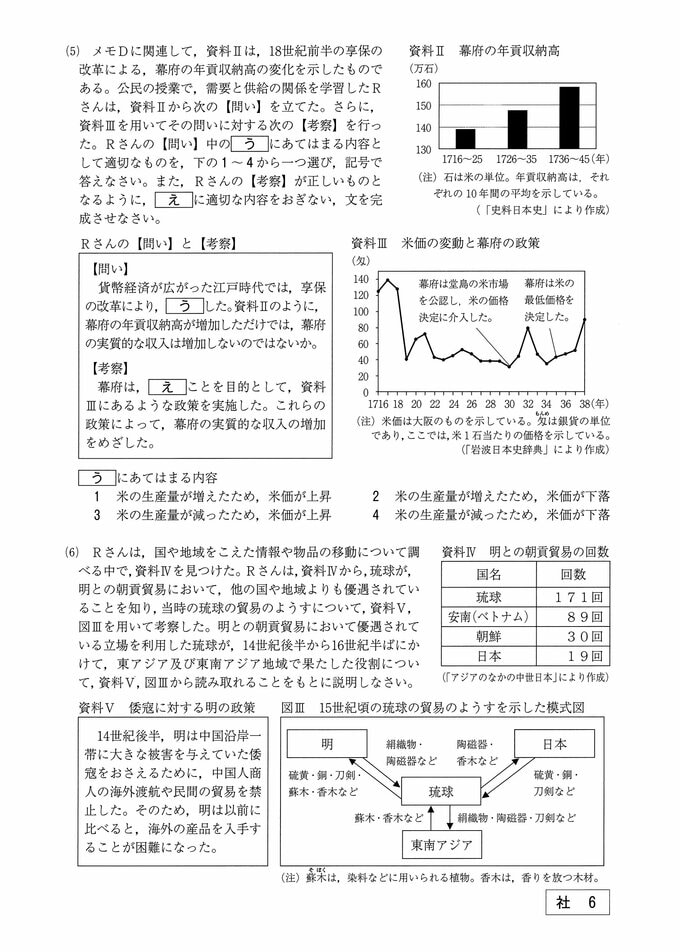 山口県公立高校入試『社会』試験問題・解答(令和7年度・2025年度)