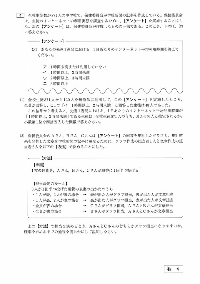 数学の試験問題(3~4ページ)