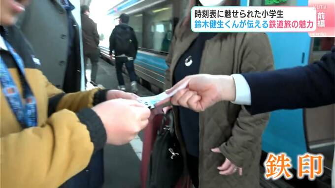 わずか3分の乗り換え時間で、健生くんは全国40の第3セクター鉄道会社で実施される御朱印ならぬ鉄印を買い求めます。