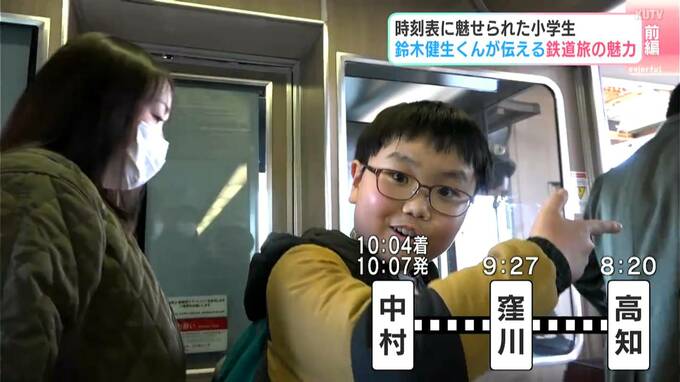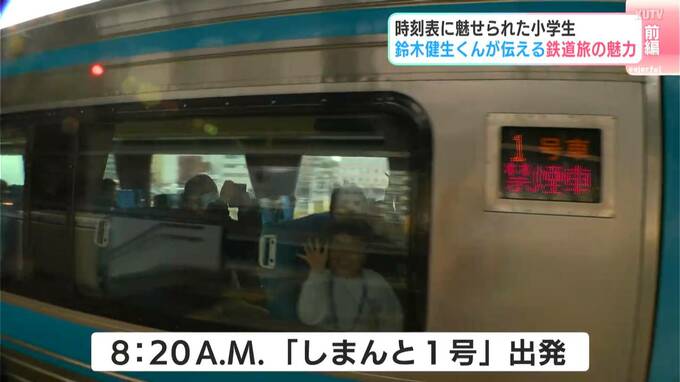 列車は窪川駅を過ぎ、土佐くろしお鉄道中村線に。2024年8月に高知を訪れ、ごめん・なはり線に乗車した健生くん。今回、中村・宿毛線に乗り、宿毛まで行けば土佐くろしお鉄道は完全乗車となります。乗車中もどこを走っているのか気になるようで、時刻表に目を光らせます。