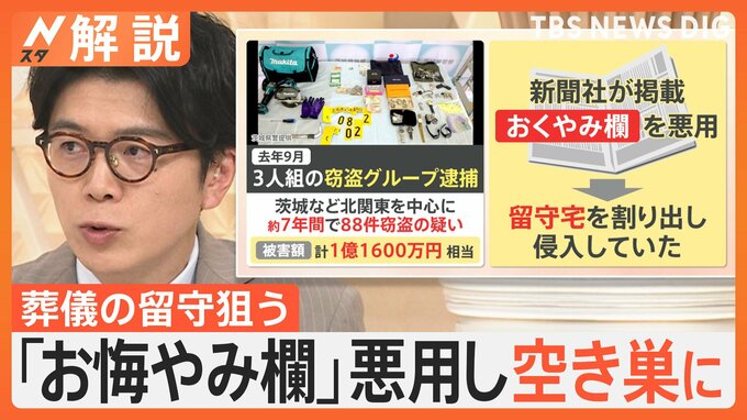 通夜や告別式などの葬儀で誰もいない家を狙って空き巣などに入る“おくやみ泥棒”。3月1日に80歳で逝去されたみのもんたさんの自宅にも、亡くなった翌日に何者かが侵入していたことが分かりました。齋藤慎太郎キャ…