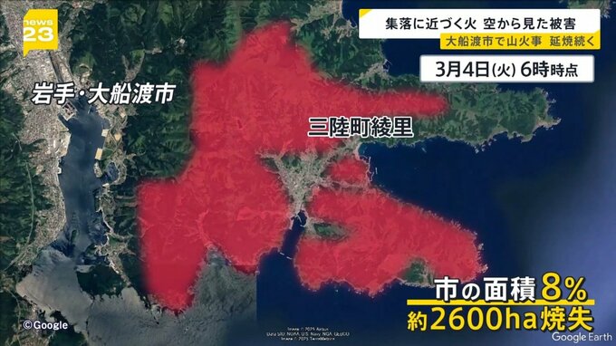 しかし延焼は続き、大船渡市の面積の8%ほどにあたる約2600ヘクタールが焼失しています。
