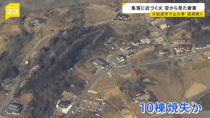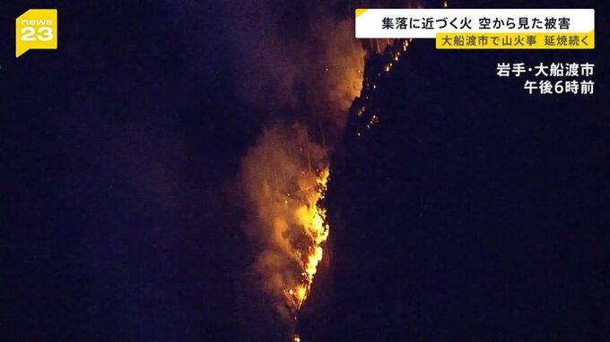 大船渡市の面積8%焼失も延焼続く…集落に近づく火