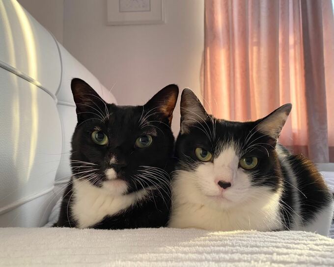 2日前には藤さんの愛猫・マルとオレオが「333,333フォロニャーたっせーしたらおかーさんが記念グッズ作るって言ってたのを」「こみみにはさんだのでご報告しておきますね」と伝える、マルとオレオの2ショット写真を投稿。