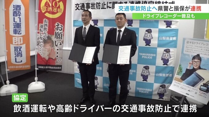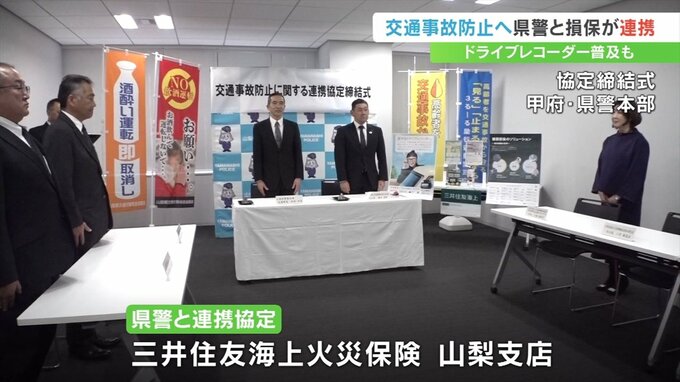 交通事故の未然防止へ向けて連携する協定を山梨県警と大手損害保険会社が結びました。