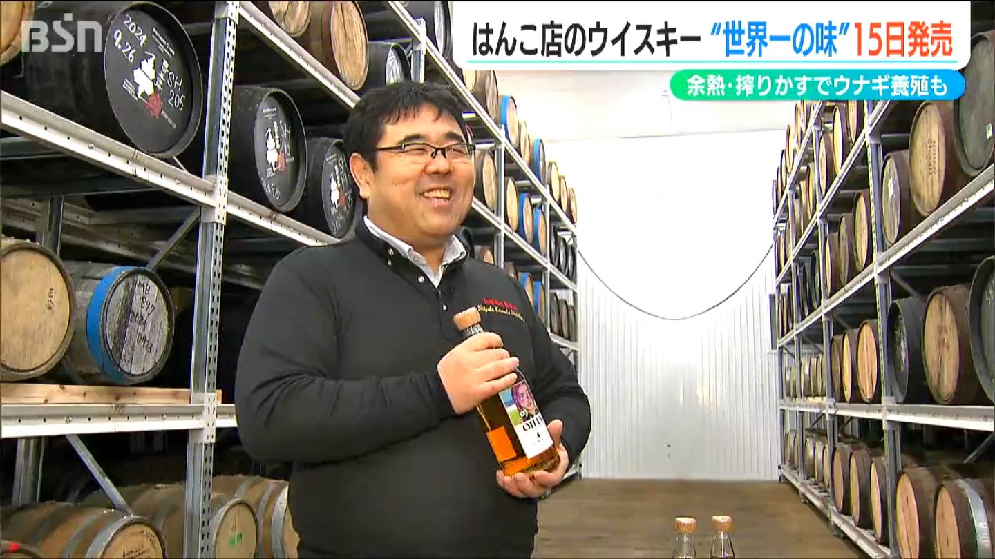 新潟市の“はんこ店”が作った3年物のウイスキーが、15日に発売されることになりました。ウイスキーの製造過程に出た温水や絞りかすは『ウナギの養殖』にも使っているそうです。