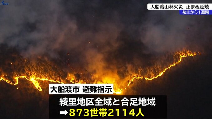 岩手県大船渡市の山林火災は発生から1週間を迎えました。