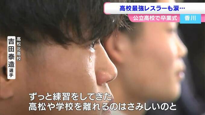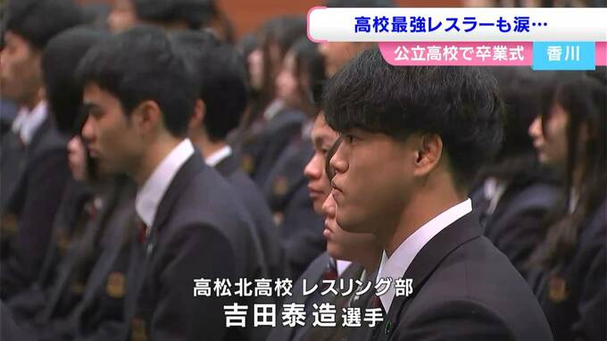 あの高校最強レスラーも、きょう(5日)、卒業の日を迎えました。学校での思い出を振り返りながら入場する卒業生たち。高松北高校では、きょう、205人の3年生が巣立ちの時を迎えました。