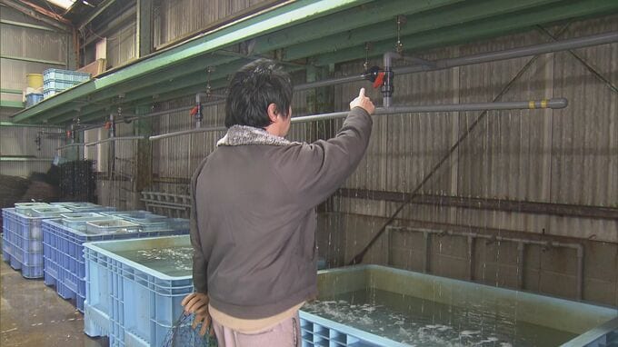 「“無菌の水”がここから流れてきます。その中に表面をきれいにしたカキを漬け込む」