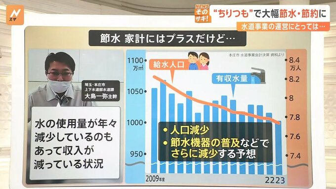 本庄市・上下水道部水道課の大島一弥主幹によると「水の使用量が年々減少しているのもあって、収入が減っている状況」だということです。