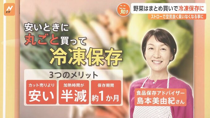 安いときに丸ごと買って、冷凍保存するのがおすすめだと、食品保存アドバイザーの島本美由紀さんは言います。