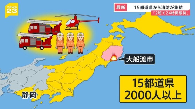 神奈川だけでなく、東日本各地から集結している消防隊。新たに静岡も加わることになり、これで15都道県からの2000人以上が活動することになります。