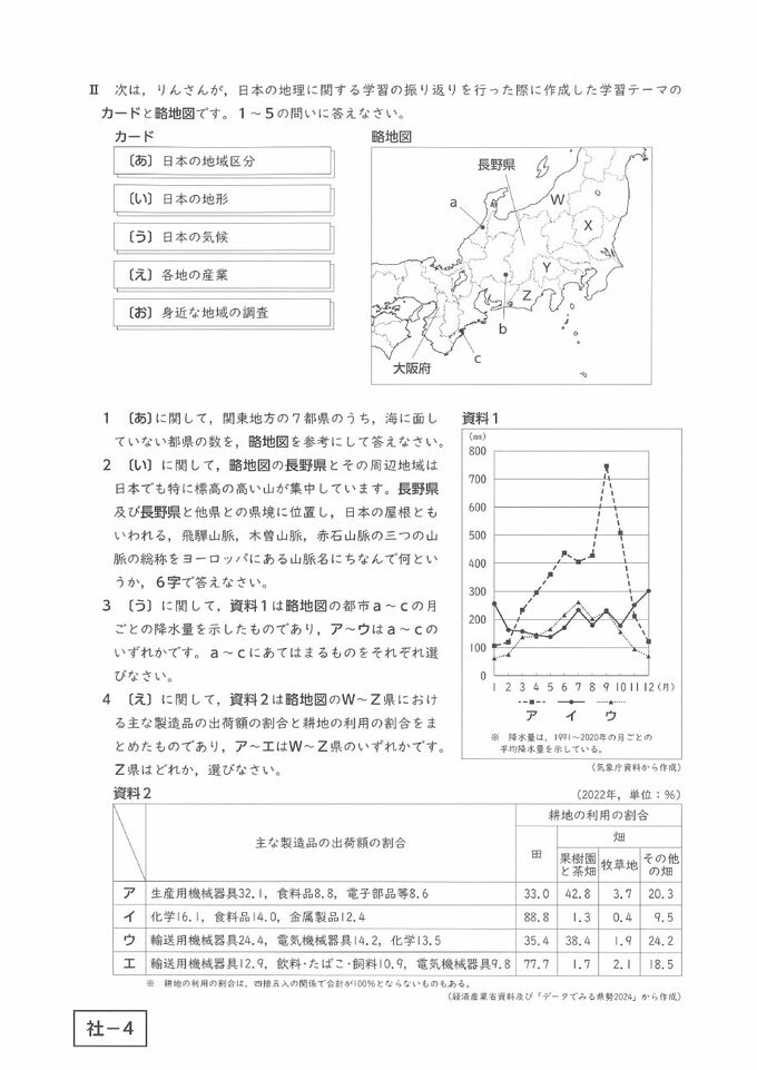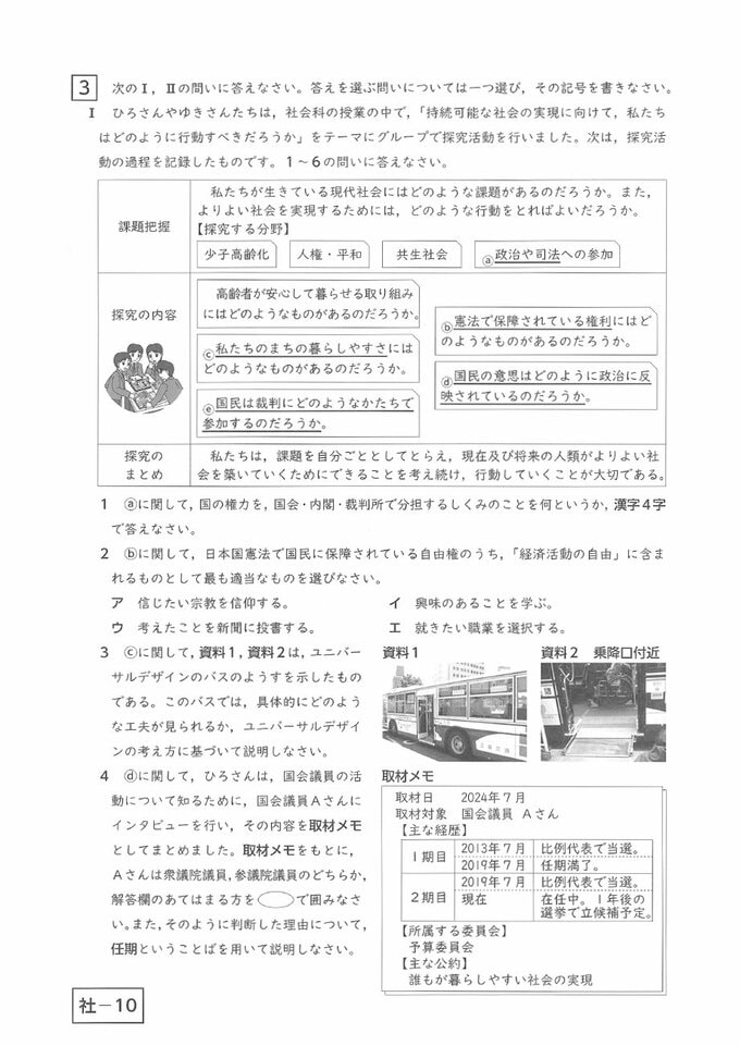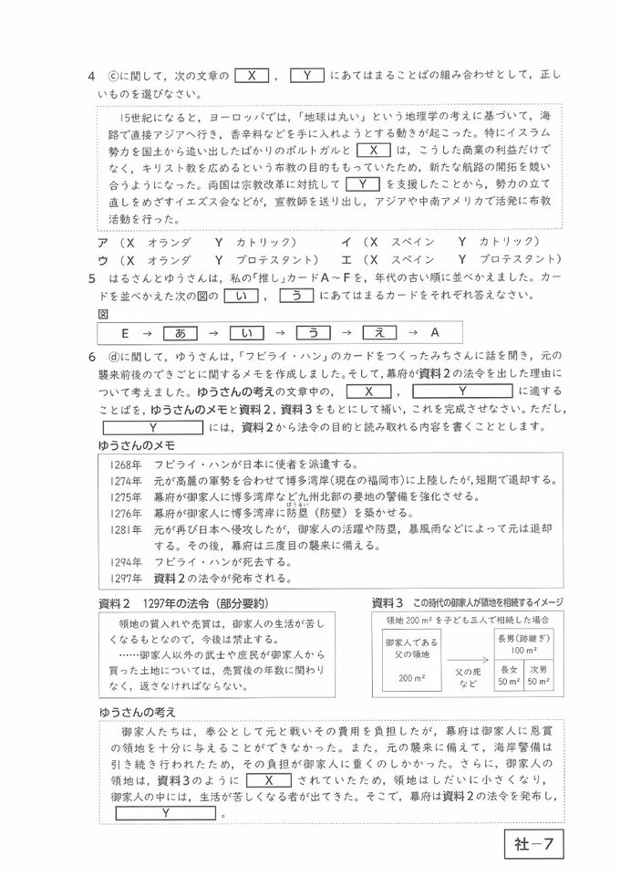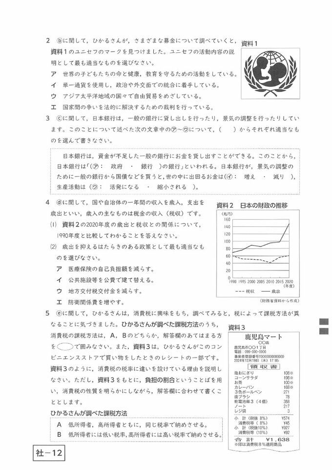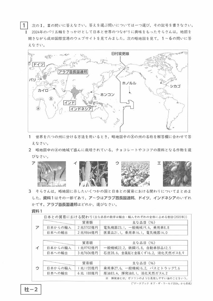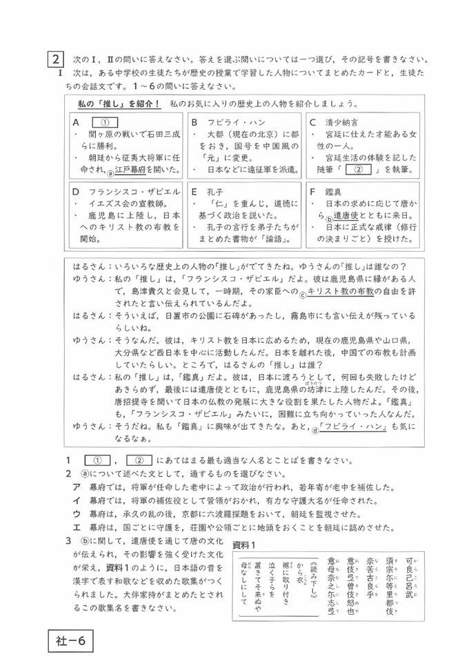 【入試問題全教科・解答速報】鹿児島県公立高校入試3月6日 社会・数学【令和7年度高校受験2025】 南日本放送 2025年3月6日(木) 12:00 国内 2025年3月5日(水)と6日(木)に行われる「鹿児島県公立高校入学者選抜試験」学力検査の問題と解答例を速報します。 試験科目は、初日の5日は、国語、理科、英語。2日目の6日は社会、数学です。 鹿児島県内の公立高校受験はことし、定員1万474人に対し、最終出願者は8507人です。倍率は0.81倍でした。合格発表は今月13日です。 国語【問題】【解答】 理科【問題】【解答】 英語【問題】【解答】 社会【問題】【解答】 数学【問題】【解答】 【社会】問題 【社会】解答