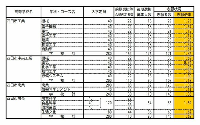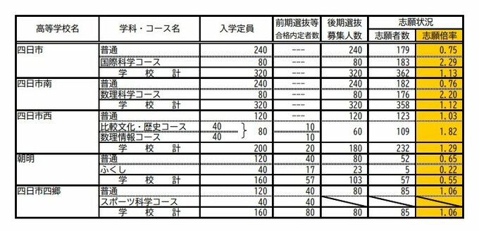 【確定版】三重県立高校入試2025 後期選抜の志願倍率・出願状況 桑名の理数2.25倍、四日市の国際科学2.29倍、津の普通1.12倍、伊勢の国際科学1.83倍
