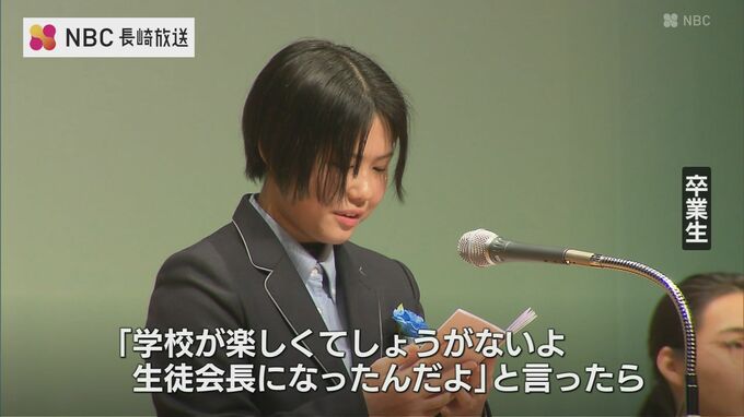 卒業生の答辞「『学校が楽しくてしょうがないよ、生徒会長になったんだよ』と言ったら、昔の自分は『絶対にありえない』と言うと思います」