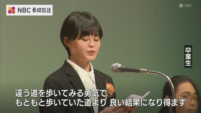 卒業生の答辞「(以前の高校時代)学校に通うことができなくなってしまいました。違う道を歩いてみる勇気で、もともと歩いていた道より良い結果になり得ます」