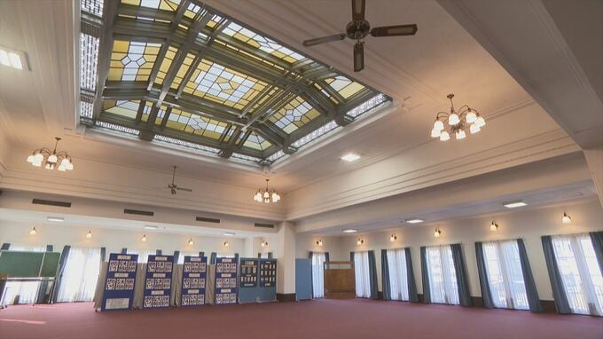 一辺が6m余りある天窓からは柔らかい光が降り注ぎ、今もなお発表会など市民の活動を見守っています。