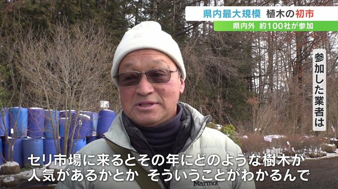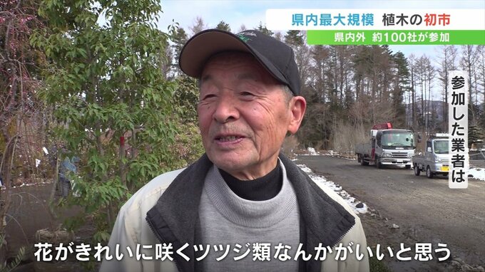 富士河口湖町の後藤植木センターは毎年この時期に植木の初市を行っていて、県内外からおよそ100社の造園や園芸業者が参加しました。