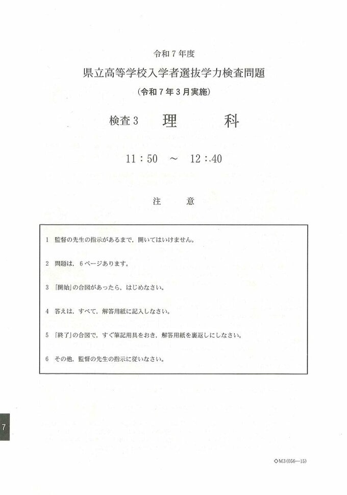 【問題と解答】理科 2025年度県立高校入試 富山県 3月6日(木)11:50-12:40 実施 チューリップテレビ 2025年3月6日(木) 17:02 国内 暮らし・マネー 富山県の県立高校全日制課程の一般入試「理科」の試験問題と解答です。