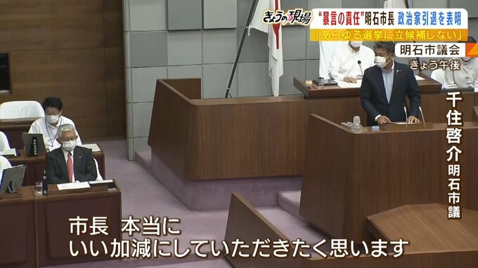 この問責決議を巡って泉市長は10月8日、式典に同席した明石市議会の榎本和夫議長に対してこんな言葉を発していました。