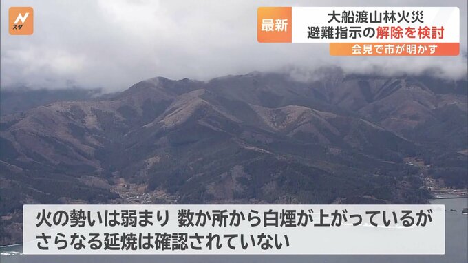 岩手県大船渡市の山林火災について、市はきょう午前の会見で赤崎町の一部地域で避難指示の解除を検討していることを明らかにしました。大船渡市の防災担当者「赤崎町の一部地域において現在、避難指示解除を検討中…