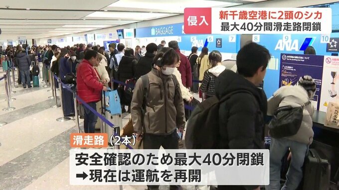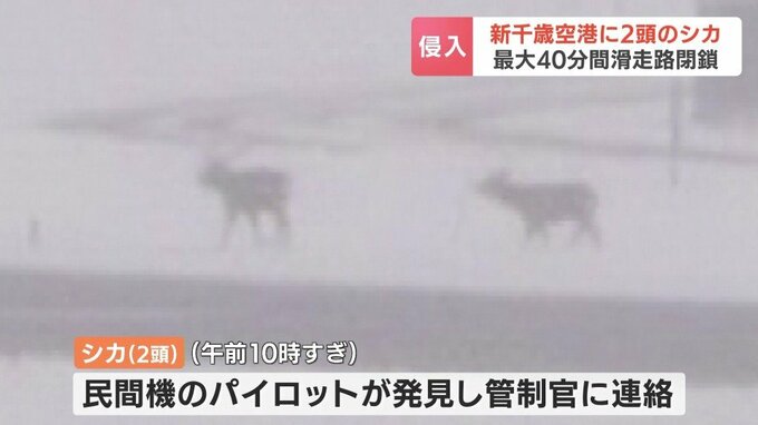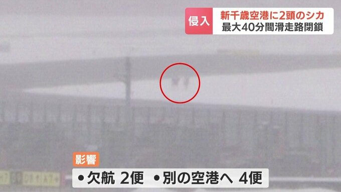 6日午前、新千歳空港にシカ2頭が侵入して一時、旅客機が離着陸できなくなり、一部の便が別の空港に着陸しました。