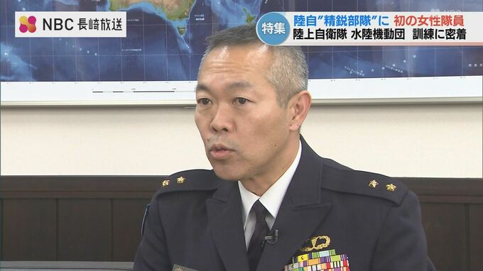「全国の普通科部隊に比べてとりわけ厳しい任務を有し厳しい訓練を行っている。女性隊員は今後水陸機動団、そして自衛隊全体でますます増加していくと思っています」