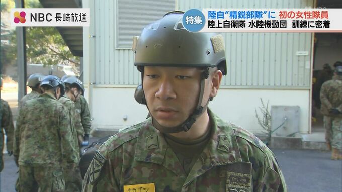水球で全国4位になったこともあるトップアスリートですが、ここは陸上自衛隊の男子隊員の中でも強者が集う水陸機動団です。訓練に男女の区別はありません。