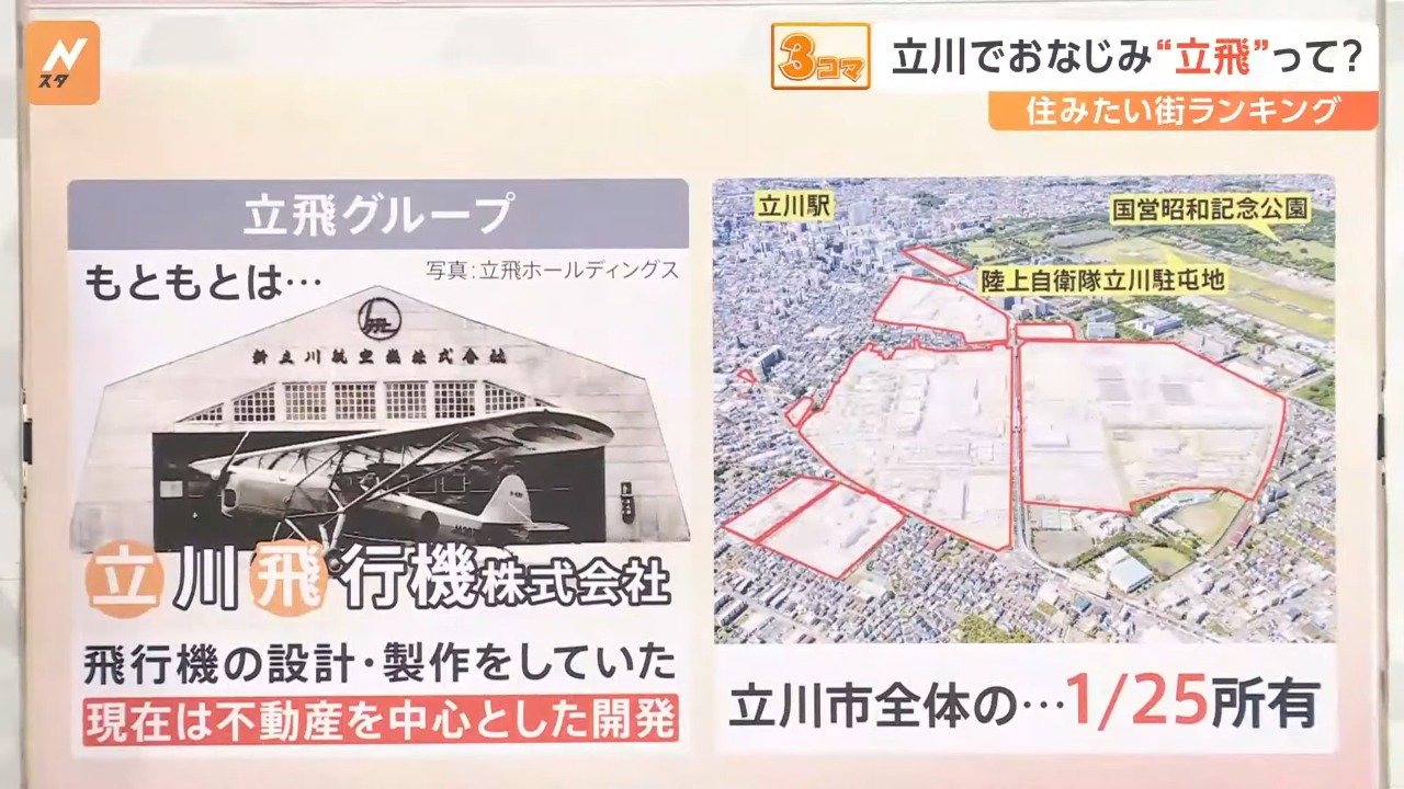 その立飛グループが所有している土地が、立川市全体の25分の1(4%)を占めているということなんです。東京ドーム21個分になります。